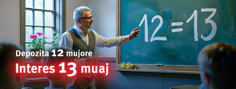 Zgjidhni Depozitën Ekstra Interes për të përfituar më shumë interes, kreditim mujor të interesit, bonus shtesë në maturim dhe siguri të plotë të fondeve tuaja.