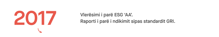 Ne përshkruajmë pikat kryesore që tregojnë progresin tonë dhe ndikimin e përpjekjeve tona. Si pionierë në zbatimin e praktikave të zhvillimit të qëndrueshëm, ne vazhdojmë të shkëmbejmë njohuri dhe përvoja, duke ndihmuar në krijimin e një sektori financiar më të përgjegjshëm dhe me vizion për të ardhmen.
